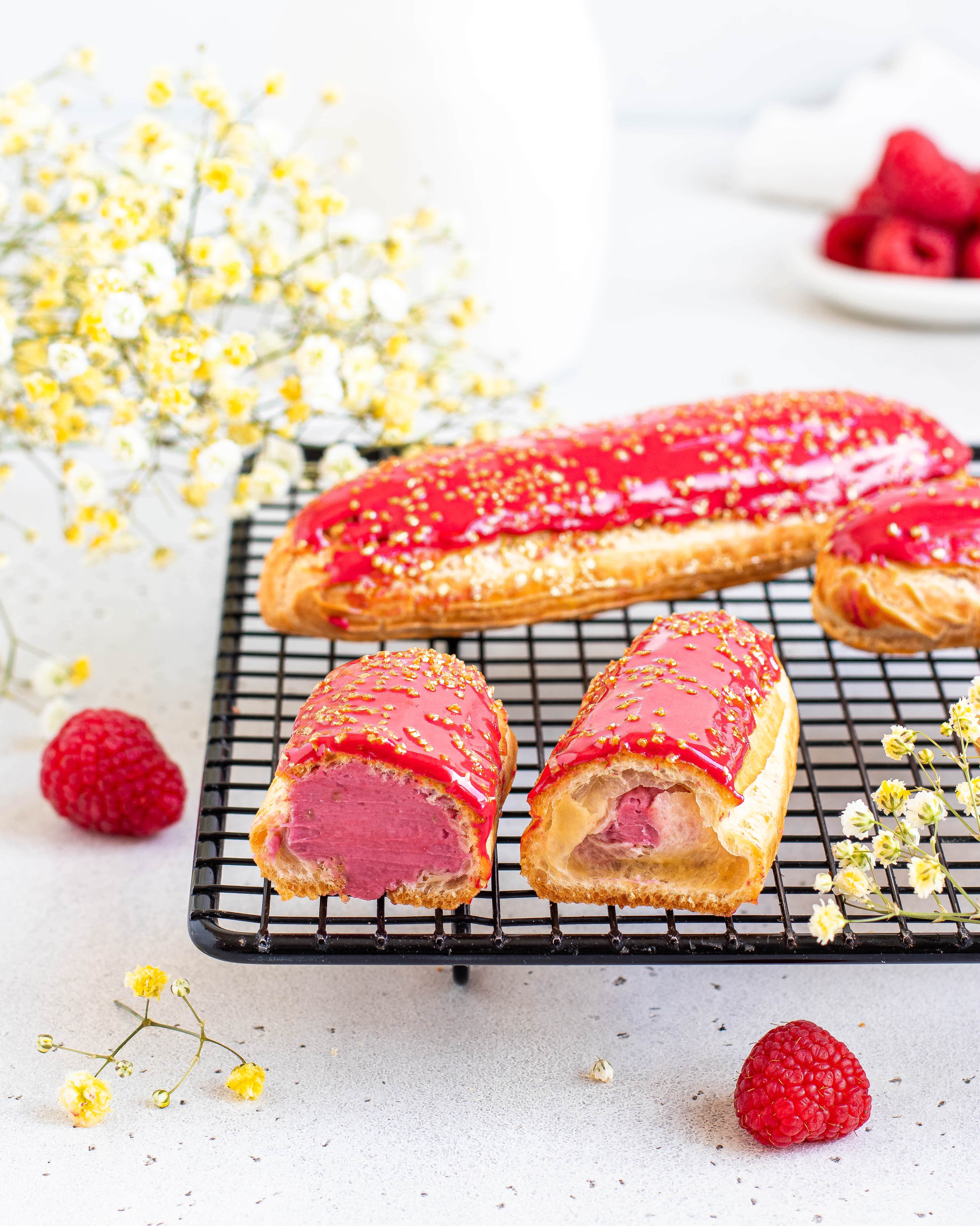 Яйцо куриное столовое, масло сливочное, меланж пастеризованный [яйцо куриное], глазурь белый шоколад [белый шоколад 42% (сахар, какао масло, цельное сухое молоко, обезжиренное сухое молоко, эмульгатор: соевый лецитин; ароматизатор ваниль), сироп глюкозы (с содержанием сорбата калия менее 0,1%), вода, сахар, желирующее вещество: фруктовый пектин, яблочное пюре, краситель: диоксид титана; регуляторы кислотности: лимонная кислота, трехзамещенный цитат кальция; загуститель: альгинат натрия], вода питьевая, малина свежемороженная молотая, мука пшеничная хлебопекарная высший сорт, молоко, масло сливочное, пюре малиновое свежемороженое [ягоды малины, инвертный сахарный сироп], сахар, аромапаста Малина (глюкозный сироп, инвертный сахарный сироп, мякоть малины 19%, регулятор кислотности(Е 330), экстракт бузины, натуральный ароматизатор, загуститель(Е 1422), вода, консервант(Е202)), смесь для окрашивания [вода, сахар, краситель пищевой (Е129), загустители (глицерин, камедь гуаровая, камедь рожко