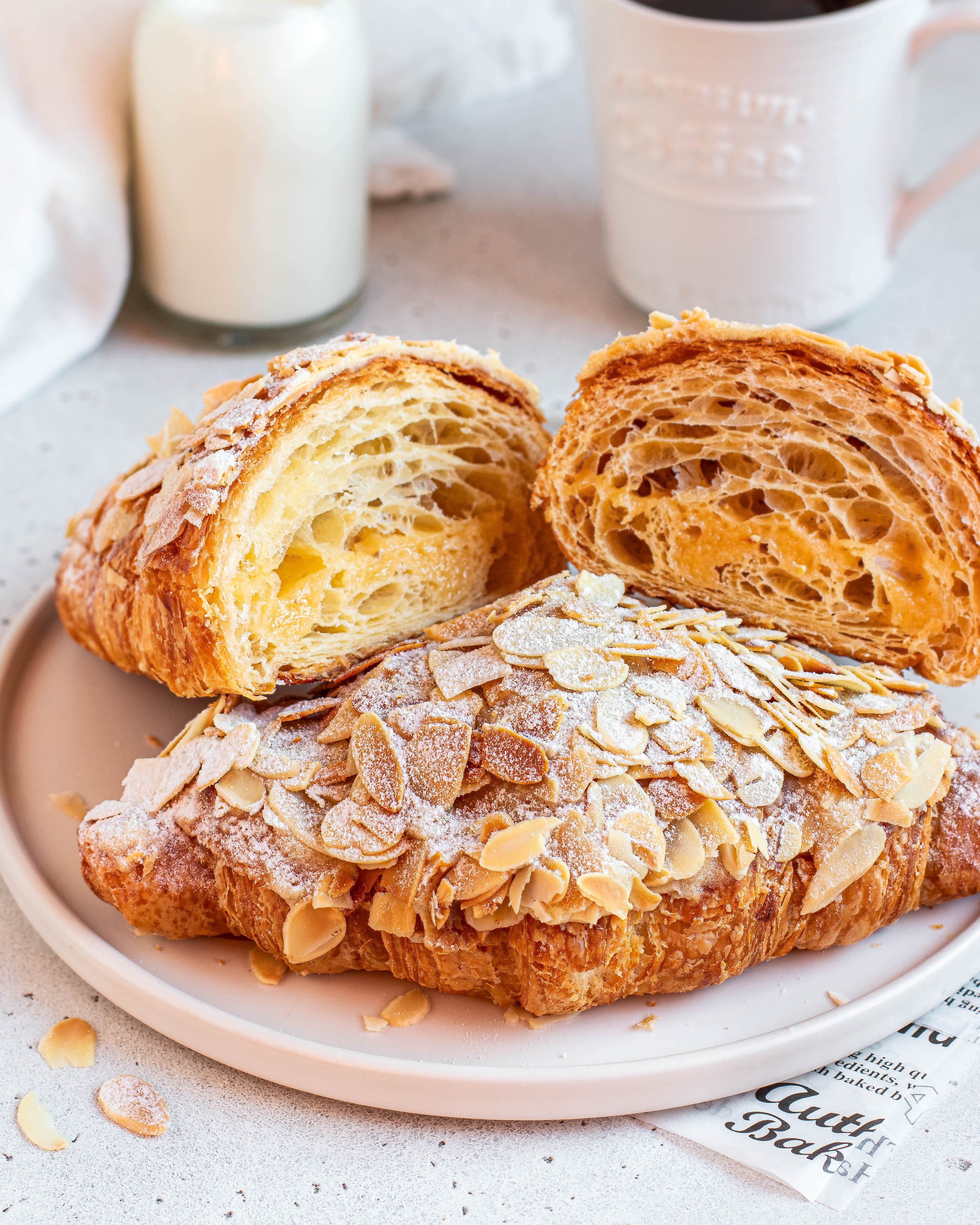 Мука пшеничная хлебопекарная высший сорт, масло сливочное [высокожирные пастеризованные сливки], вода питьевая, яйцо куриное пищевое, пудра миндальная, сахар, лепестки ореха миндаля,молоко питьевое пастеризованное [молоко пастеризованное], мука кукурузная, дрожжи хлебопекарные прессованные, декоративная термостойкая сахарная пудра для украшения кондитерских изделий [декстроза, пшеничный крахмал, полностью гидрогенизированный растительный жир (пальмовый), растительное масло (рапсовое), ароматизатор ванилин], соль поваренная пищевая (агент антислеживающий (Е536)), консервант кислота сорбиновая Е200.